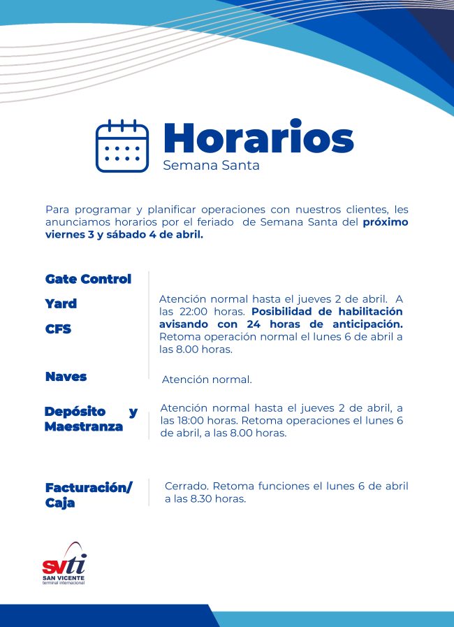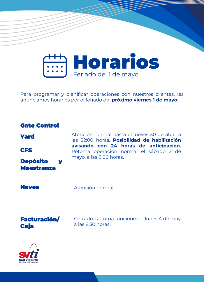 +56412503838SVTI está fuertemente comprometido con la competitividad de San Vicente y la Región del Biobío. A través de la excelencia, seguridad y eficiencia de nuestras operaciones, entregamos un servicio de alto nivel para el exigente comercio global.